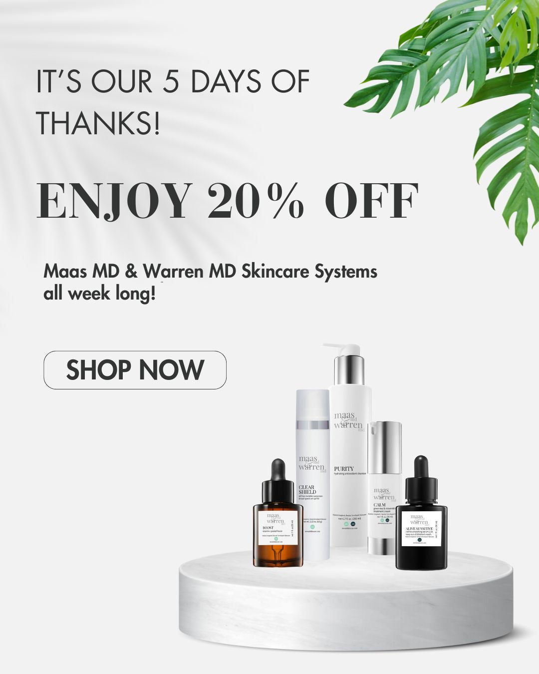 The Maas MD & Warren MD Skincare systems are based upon the rebuilding and strengthening of dermal cells (fibroblasts), the stimulation of collagen production (which firms and promotes skin elasticity), and the addition of the most powerful antioxidants available to help destroy free radicals. These systems have high concentrations of active ingredients, are patient-inspired, and are doctor-developed.